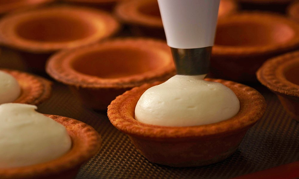 タルト生地で一度焼き、ムースを入れてからもう1度焼くことで、 タルト生地のサクッとした食感と、濃厚なチーズムースのふわっとした食感の両立を実現させました。