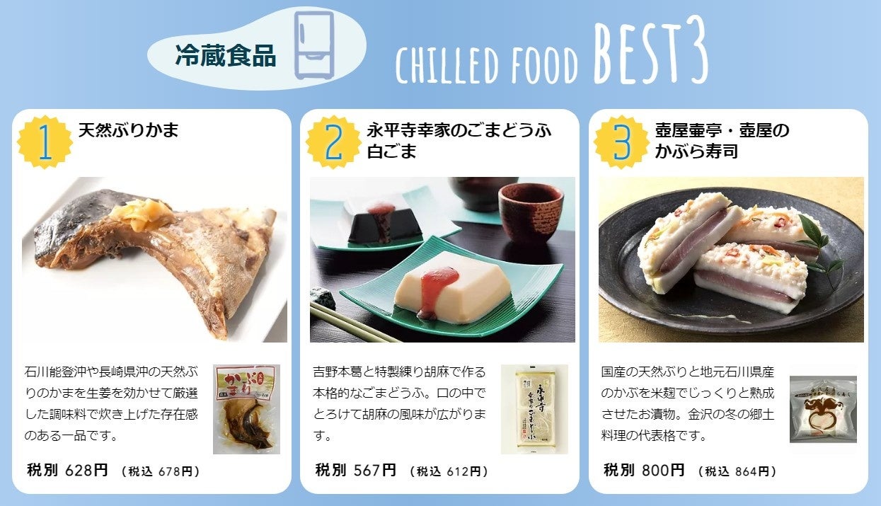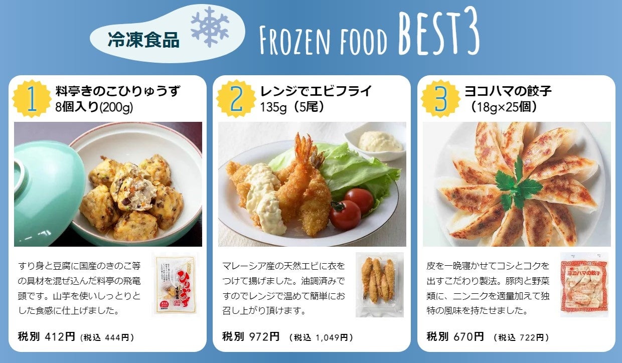 ●常温保存の食品だけでなく、冷蔵・冷凍食品も揃え、最適な配送温度帯でお届け