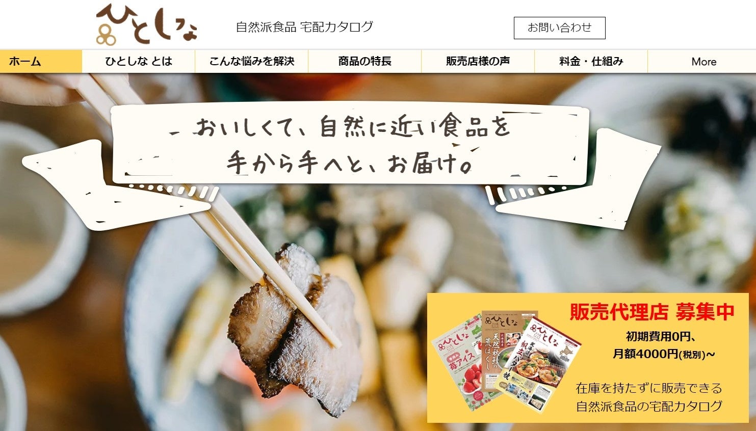 株式会社アデリー(本社:山口県柳井市、代表取締役社長:小野典子)は、自然派食品のカタログ販売サービス 『ひとしな』の販売代理店を、広く募集いたします。