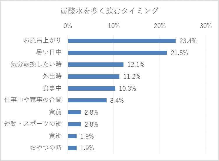 設問:あなたが特に炭酸水を多く飲むときはどんな時ですか?ひとつだけお答えください。