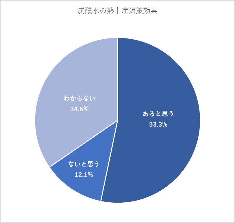「あると思う」と回答した方が53.3%と、半数以上が炭酸水は熱中症対策として効果があると考えています。