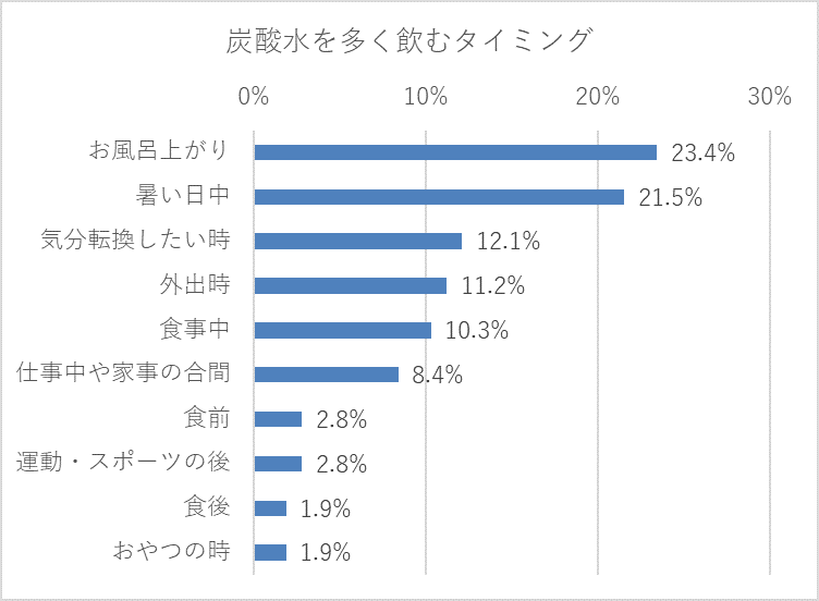 設問:あなたが特に炭酸水を多く飲むときはどんな時ですか?ひとつだけお答えください。