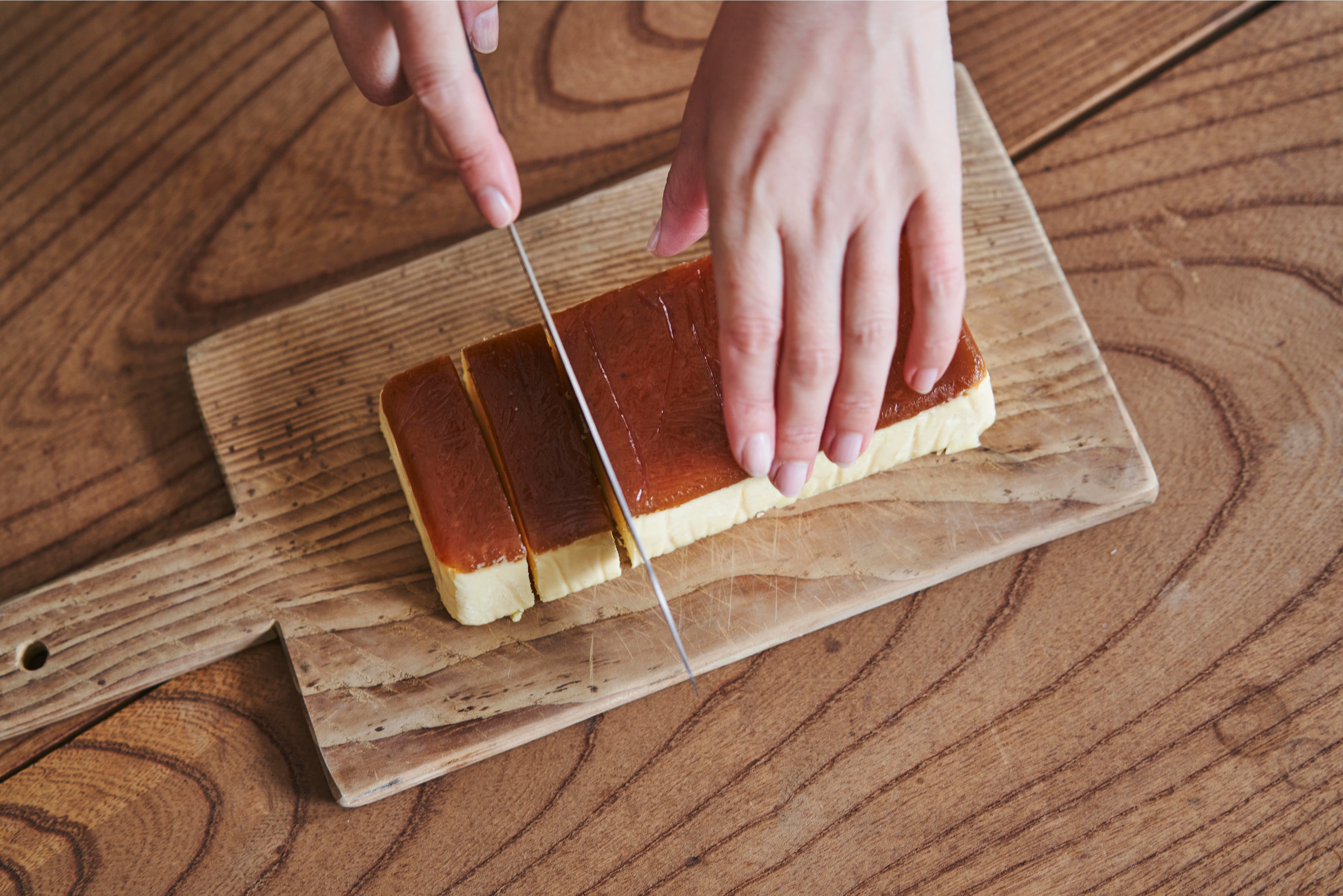 ・冷蔵庫内で90分ほど置いた半解凍状態できれいに切り分けられます。