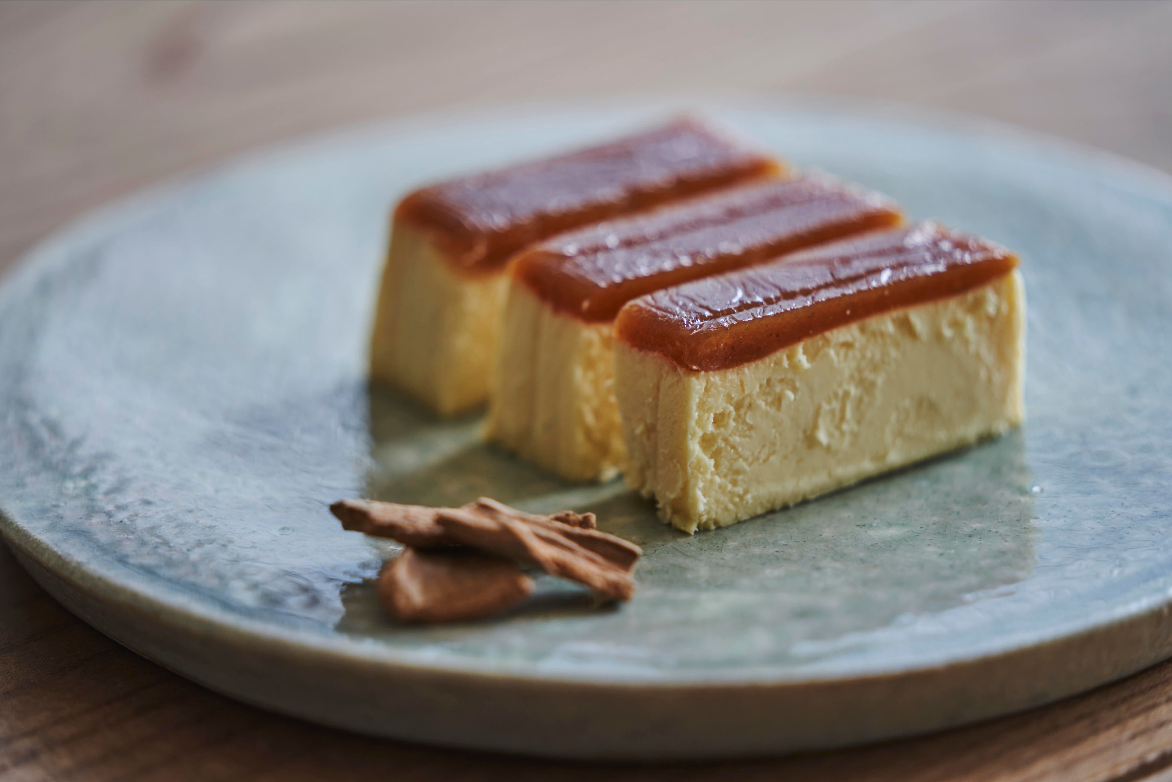 素材には、和歌山県産の希少な無農薬・無化学肥料で育った梅を使用。梅の薫りとシナモンの芳醇なジュレがチーズのクリーミーさを引き立てる、「MOGA CHEESE TERRINE」ならではの味わいです。