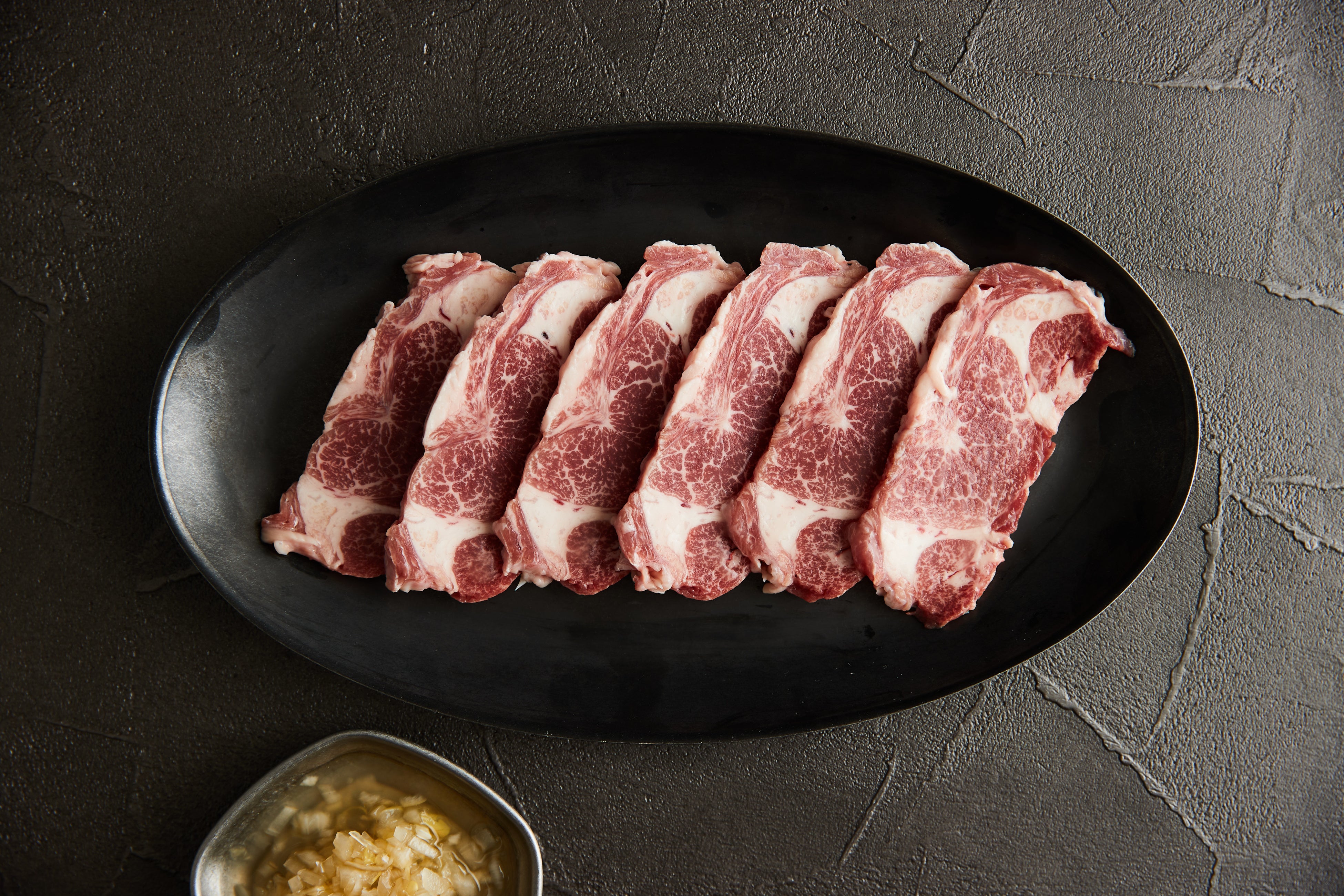 本当の焼肉通が好むタン下を「タンカルビ」と呼びます。黒毛和牛のタン下の驚くほどの旨味を、スダチ味のネギダレをたっぷりとかけてお召し上がりください。