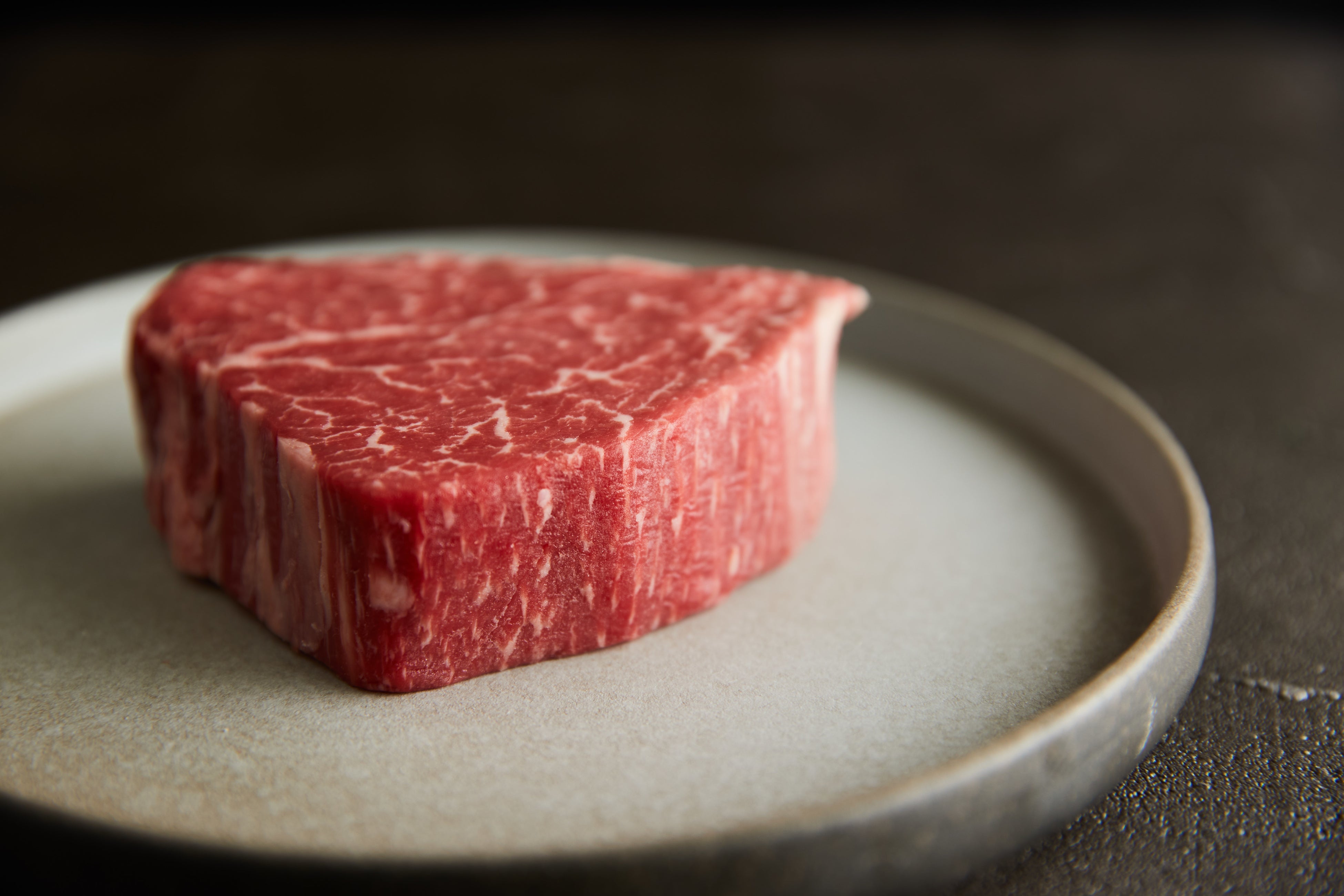 1頭から数百グラムしか取れないヒレの中心部分「ヒレ芯」を極厚に。さっと炙って、フォークで切れるほど柔らかいヒレ芯をご堪能ください。