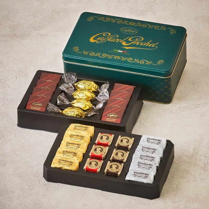 内容:深いグリーンカラーのイタリアらしい重厚感のあるデザイン缶に、ジャンドゥーヤやジャンドゥーヤビターなど大人な味わいのチョコレートをたっぷりと28粒アソート。カファレルを代表するチョコレートの数々を、存分に堪能いただけます。通常価格5,400円(税込)の商品です。