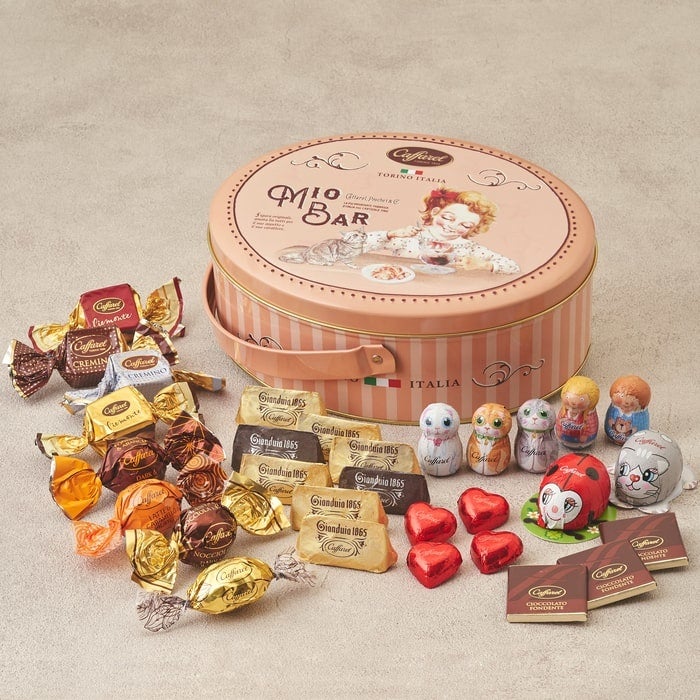 内容:お気に入りのおやつを楽しむ女の子が描かれたバスケット型の缶に、ジャンドゥーヤやピエモンテなどカファレルを代表するチョコレートをはじめ、てんとう虫やネコなどのかわいらしいホイルチョコレートや、食べごたえ満点のクレミノやソルテッドキャラメルなど全30粒をアソートしました。通常価格5,400円(税込)の商品です。