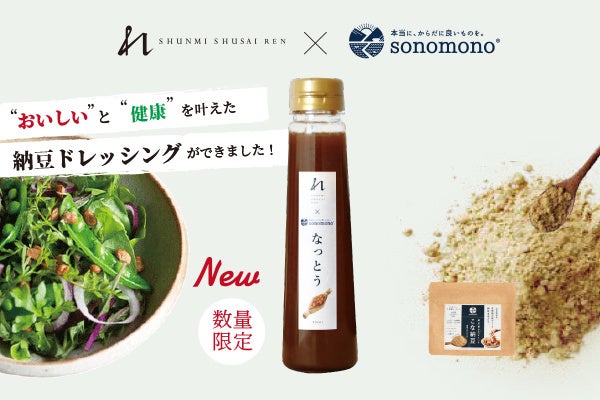 そのもの株式会社(本社:福岡県福岡市、代表:⽇⾼絵美)は、納⾖の⽇にちなんで、栃木県那須塩原市にお店を構える「てまひま工房REN」とコラボして「こな納豆」をふんだんに使った『納豆ドレッシング』を開発しました。