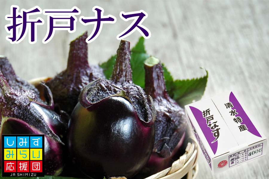 世界遺産にも認定された「三保の松原」に近い清水地区の折戸地域で栽培が行われていて、原種に近いためトゲが鋭いですが、丸い形で果肉が緻密でナスらしいコクのある濃厚な味わいとなっています。歴史を感じながら「折戸なす」をご賞味ください。