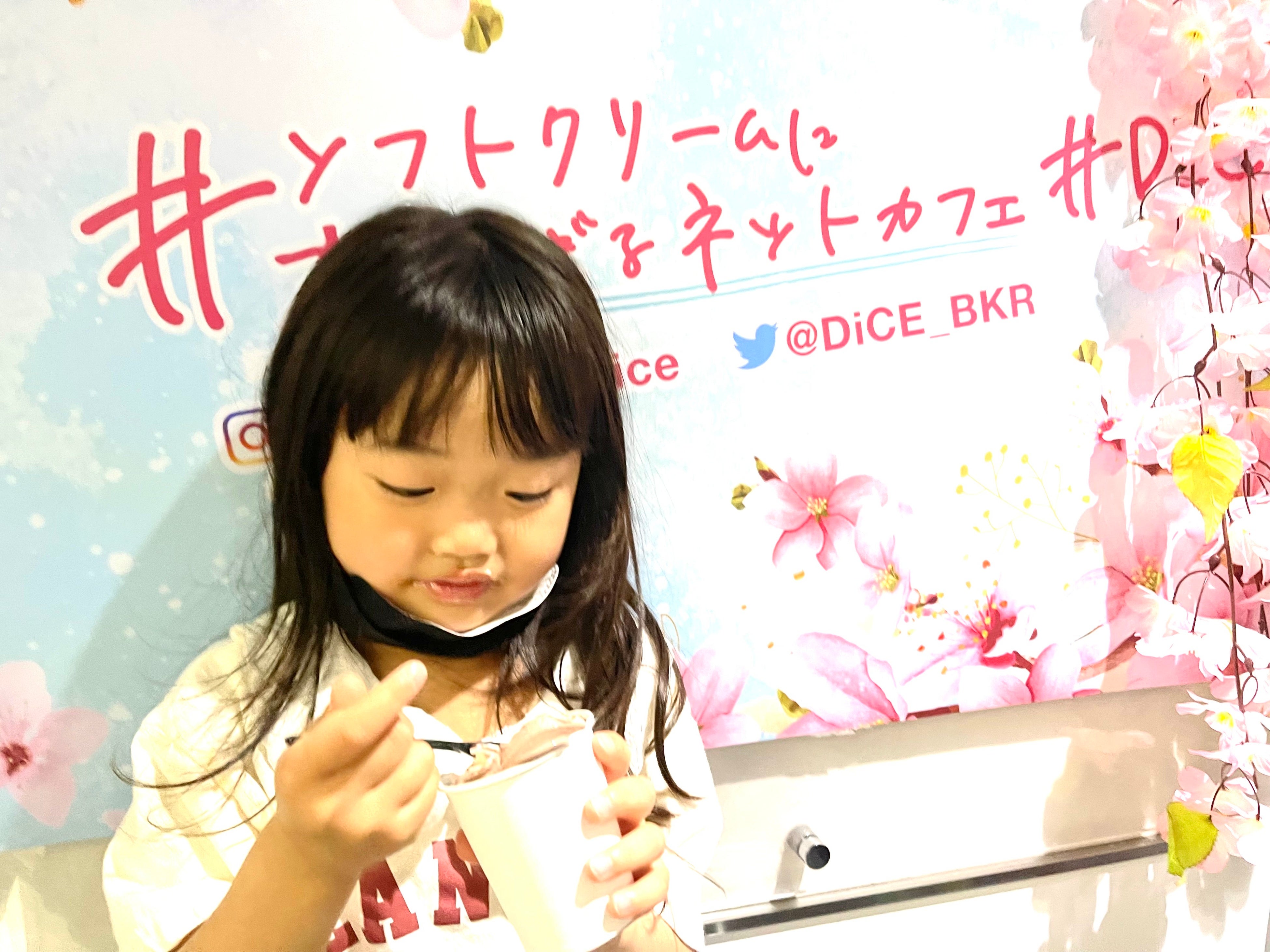 本来は店内をご利用するお客様にのみ提供しているソフトクリームですが、2020年7月より「ネットカフェとしては利用ができないけれどDiCE のソフトクリームは食べたい」という地域の子どもたちの需要に応えるためソフトクリームのテイクアウト販売を開始いたしました。“もこもこソフトクリーム”のテイクアウトは、7月11日から9月末までの期間限定で、時間は12:00~20:00に限定して販売いたします。
