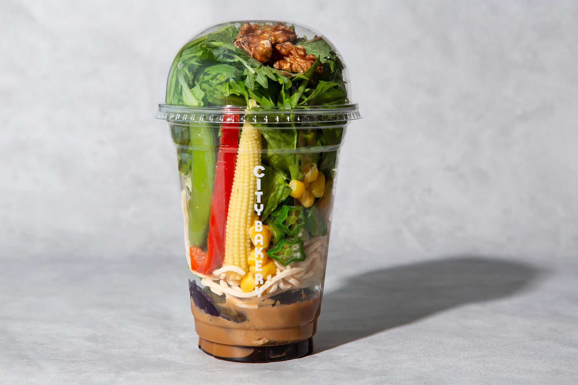彩り豊かなサラダが詰まったカップを振りながら、ドレッシングと混ぜて仕上げるベジシェイクは、今ではTHE CITY BAKERYの定番人気。そのベジシェイクに今年は「麺」を入れたベジシェイクヌードルが期間限定で新登場!https://thecitybakery.jp/