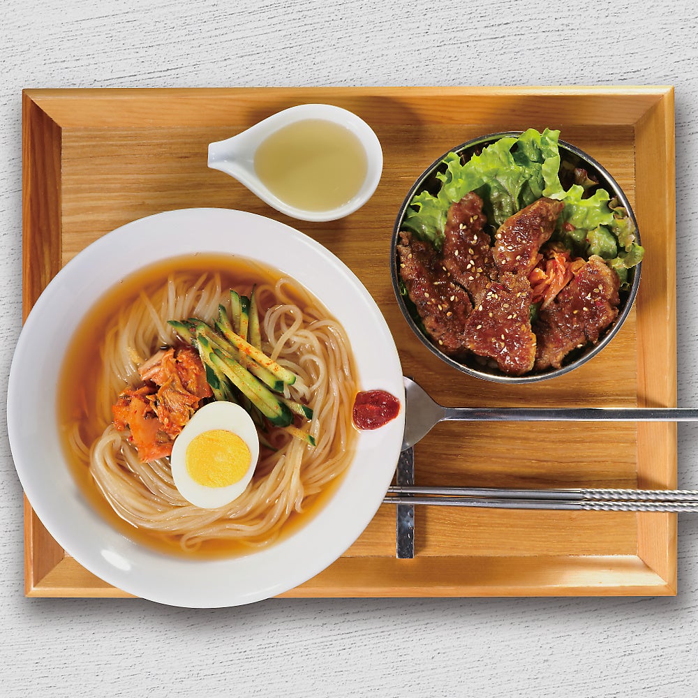 中山豆腐店の夏の風物詩「冷麺」の第二弾は、豚しゃぶの肉盛りでボリュームもありつつ、さっぱりおろしが食べやすさを後押しする「豚しゃぶの肉盛り冷麺」が新登場。国産大豆「トヨマサリ」100%の自家製豆腐をセットにすることで、中山豆腐店らしさも忘れません。冷麺・ハーフカルビ丼セットは店内飲食だけでなく、テイクアウトやUberEatsもご利用いただけます。
