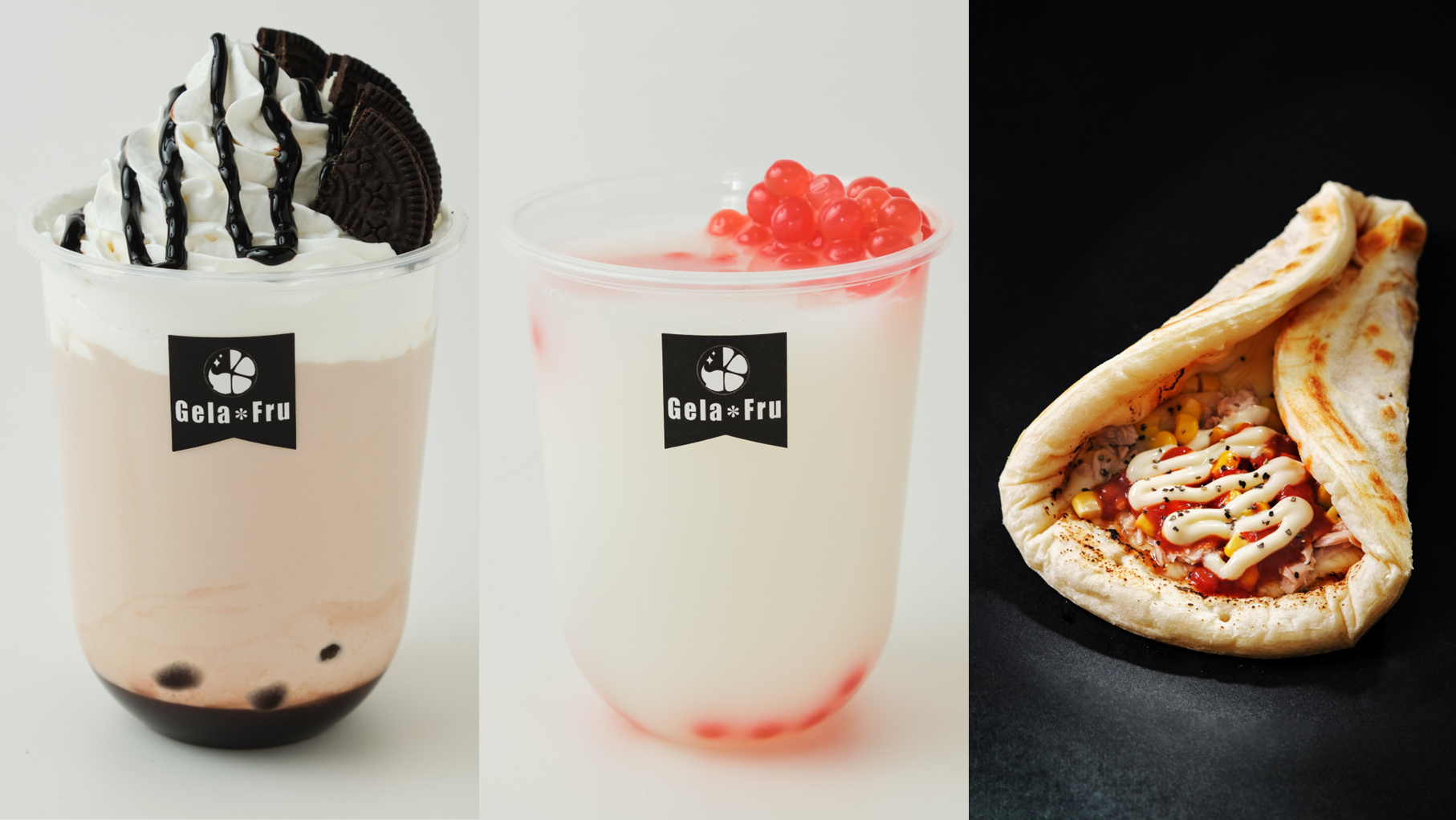 画像左から、「タピオカミルクティー」のカスタム版、ポッピング「ストロベリーカルピス」、ピザロール「ツナマヨコーン」