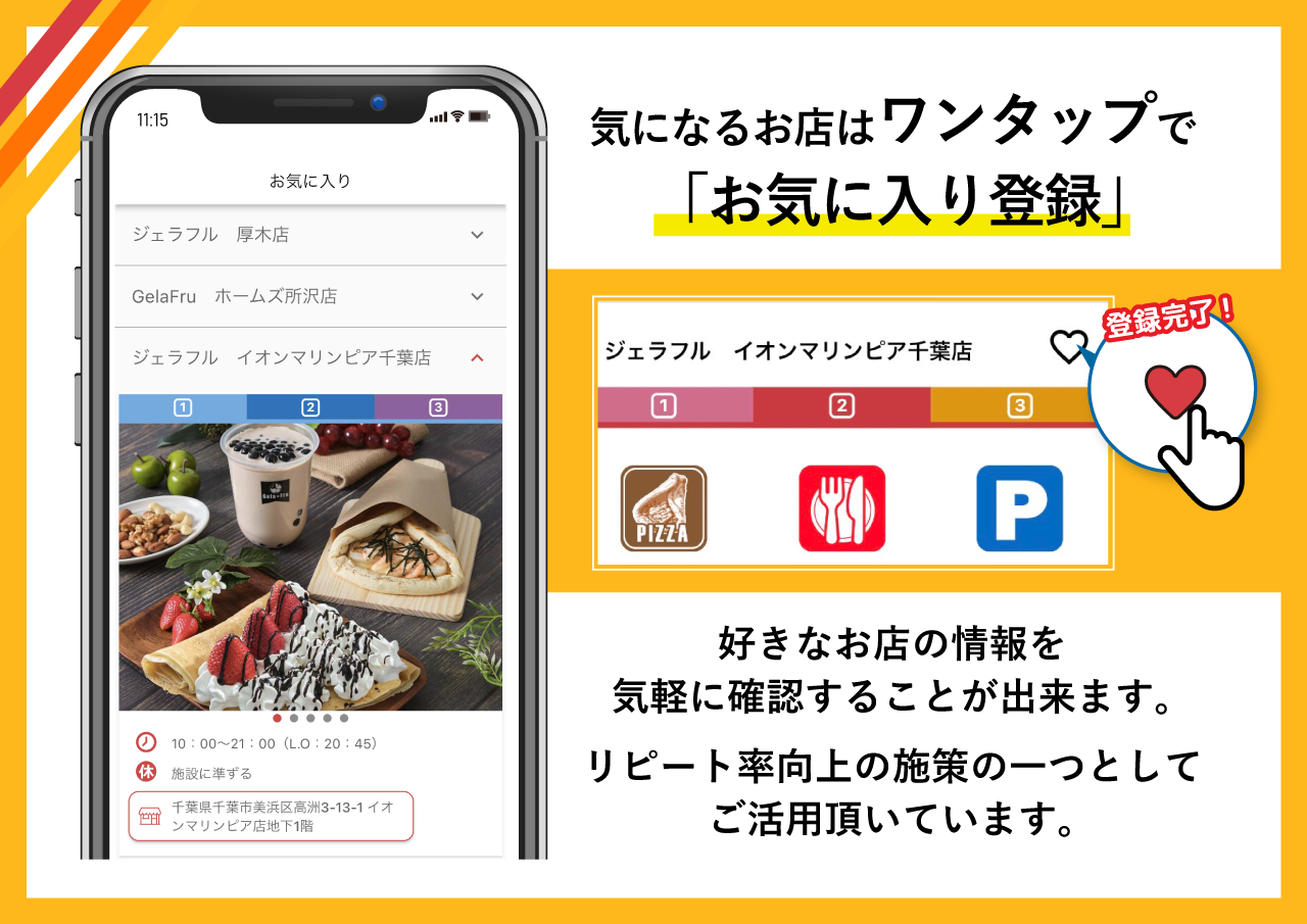 お店を「お気に入り登録」をすることもでき、検索する手間を省いて、お気に入りのお店の情報を確認することができます。