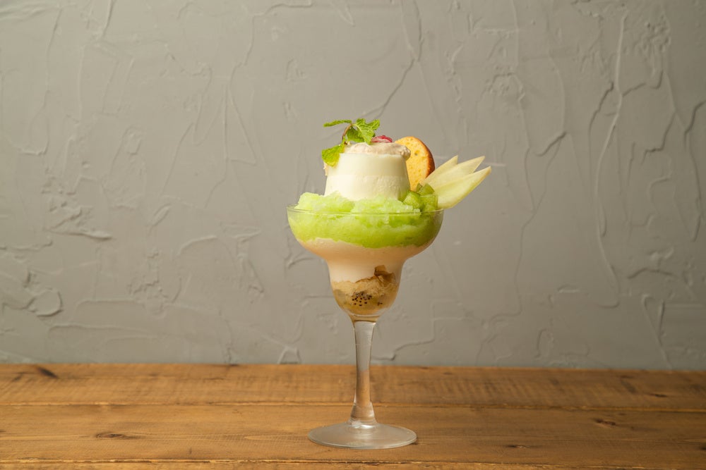 鮮やかなグリーンの「キウイ&メロン」は、メロングラニータとキウイ&ナタデココのフレーバー。夏らしいフルーティーな味わいとナタデココの食感がポイントです。