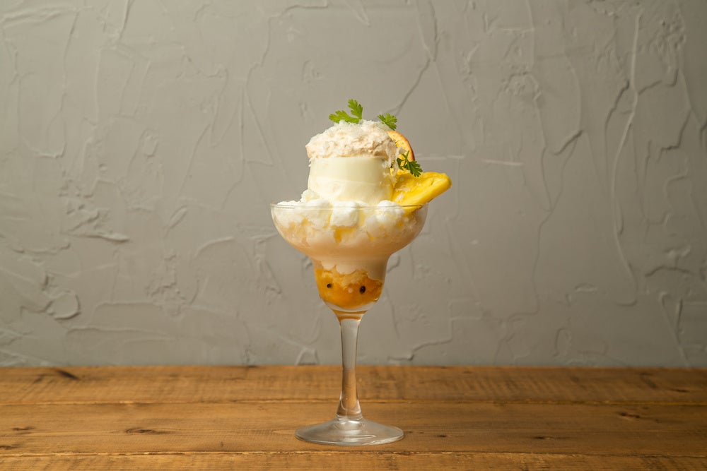 まろやかなミルキーグラニータとペコリーノチーズのしょっぱさに、パッション&マンゴーのソースがマッチしたあまじょっぱいフレーバーです。
