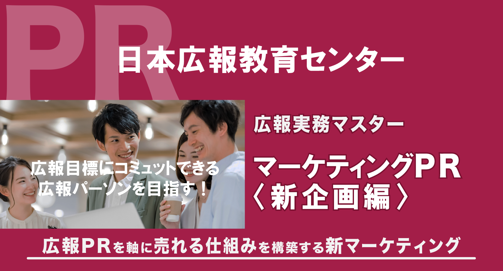 広報実務マスター「マーケティングPR〈新企画編〉」とは、広報PRを軸に売れる仕組みを構築する新しいマーケティング手法を学ぶ講座です。マーケティングのハイレベルな手法として欧米及び日本のマーケティング先進企業で注目されている「マーケティングPR」を学びます。