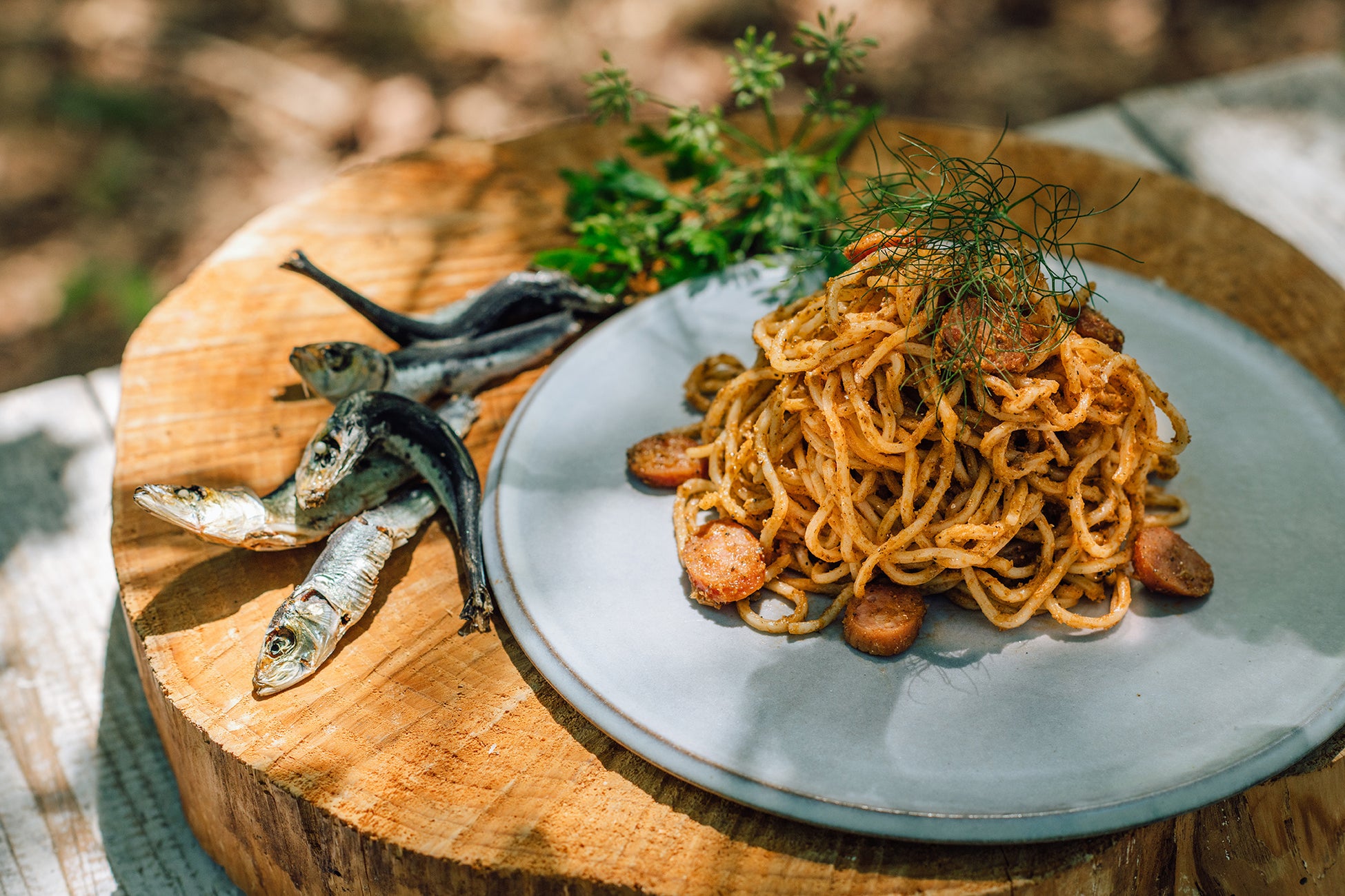 煮干しを丸ごと使っているため、まるでラメを纏ったかのようにキラキラした美しいビジュアルの「ニボリタン」は、パスタをフォークに絡ませて一口ほおばると、濃厚な煮干しの香りが鼻腔を満たします。そして、その香りとともに、酸味と甘みのバランスが絶妙なソースの味わいが口いっぱいに広がるのです。生麺のパスタは、もちもちとしていて食べ応え十分。ネーミングもさることながら、「こんな組み合わせがあったのか!」と、一口で惚れ込んでしまったのです。