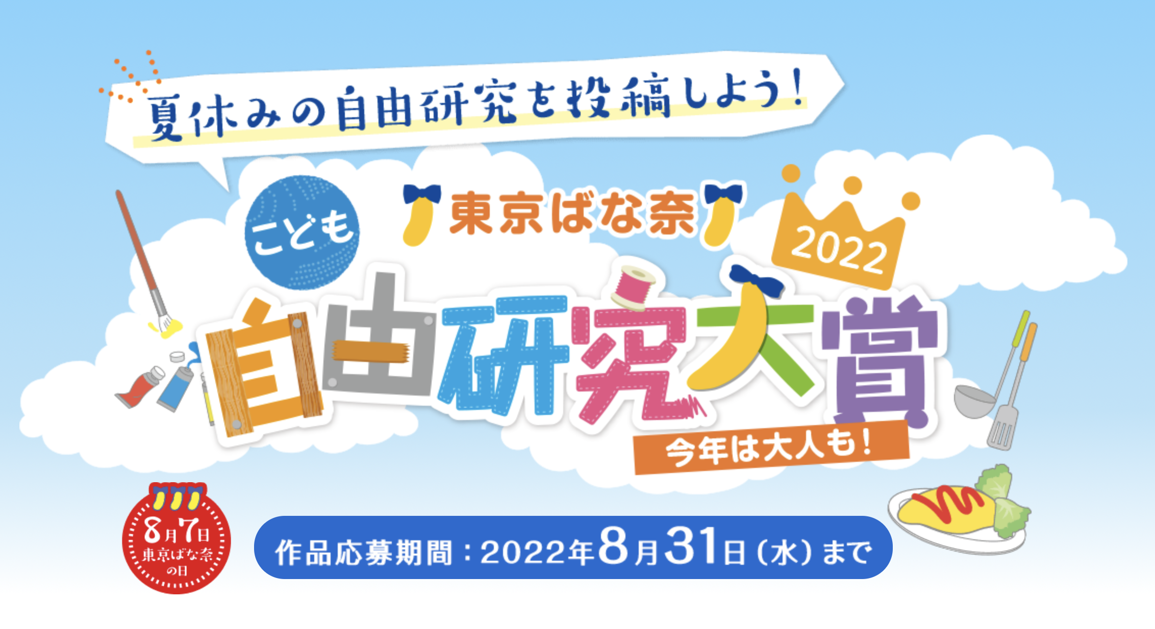 東京ばな奈がこども達の忘れられない夏休みの思い出になれたら。そんな願いから始まった『東京ばな奈こども自由研究大賞』。今年は大人部門も開催!こどもから大人まで、みんなの創意工夫を見せてください。