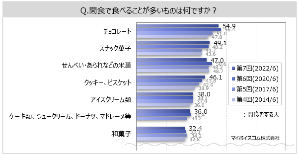 マイボイスコム株式会社(東京都千代田区、代表取締役社長:高井和久)は、7回目となる『間食』に関するインターネット調査を2022年6月1日~5日に実施しました。調査結果をお知らせします。