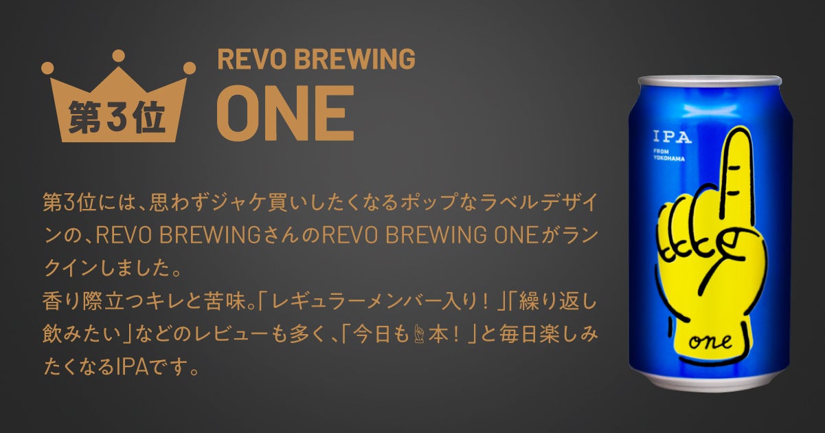 思わずジャケ買いしたくなるポップなラベルデザインの、REVO BREWINGさんのREVO BREWING ONE。香り際立つキレと苦味。「レギュラーメンバー入り!」「繰り返し飲みたい」などのレビューも多く、「今日も1本!」と毎日楽しみたくなるIPAです。
