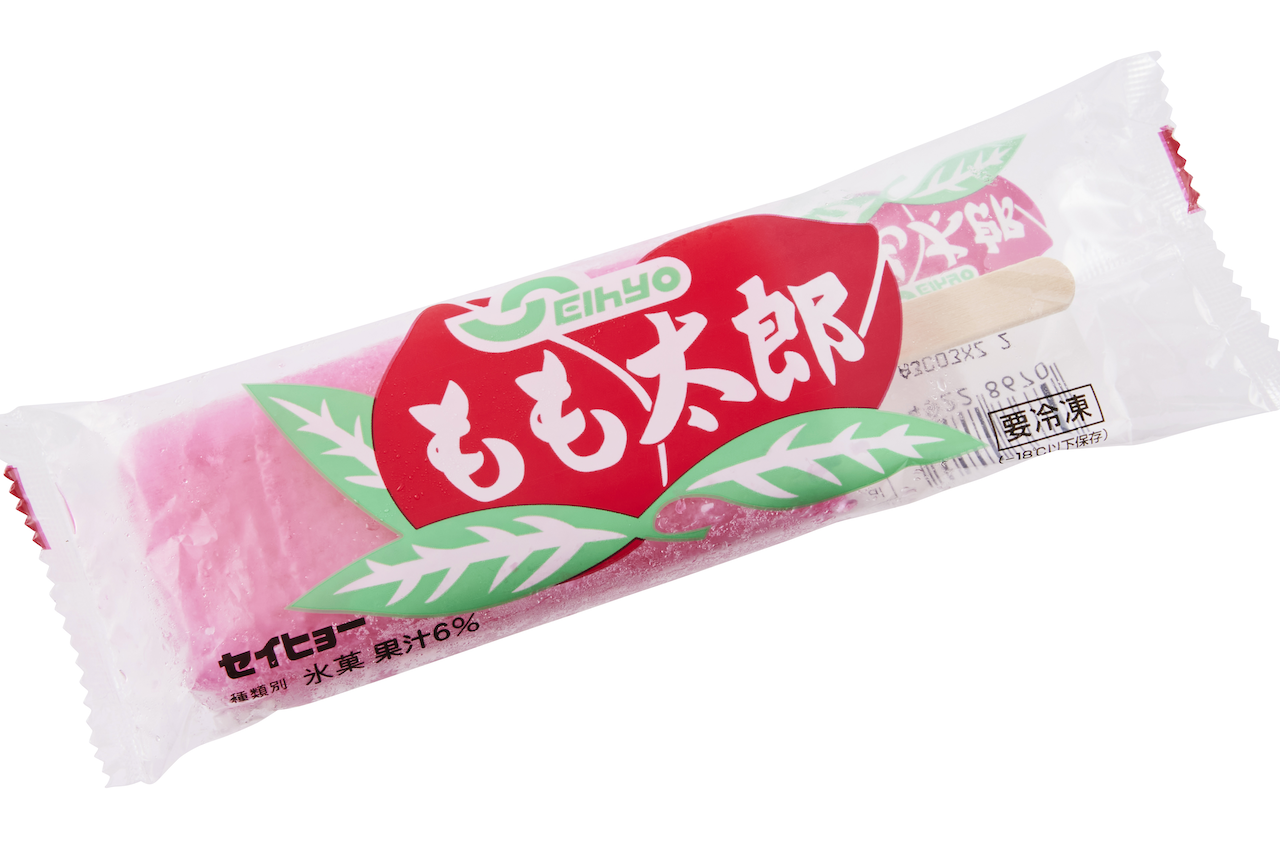 発売から70年以上続く、新潟の夏の定番アイスです。名前は”もも”太郎ですが、ももではなくいちご味です。重さ135キロの角氷を砕き、いちごシロップを混ぜて凍らせた氷粒たっぷりのかき氷バーです。かき氷を食べているようなガリガリとした食感と、さっぱりした後味が特徴です。