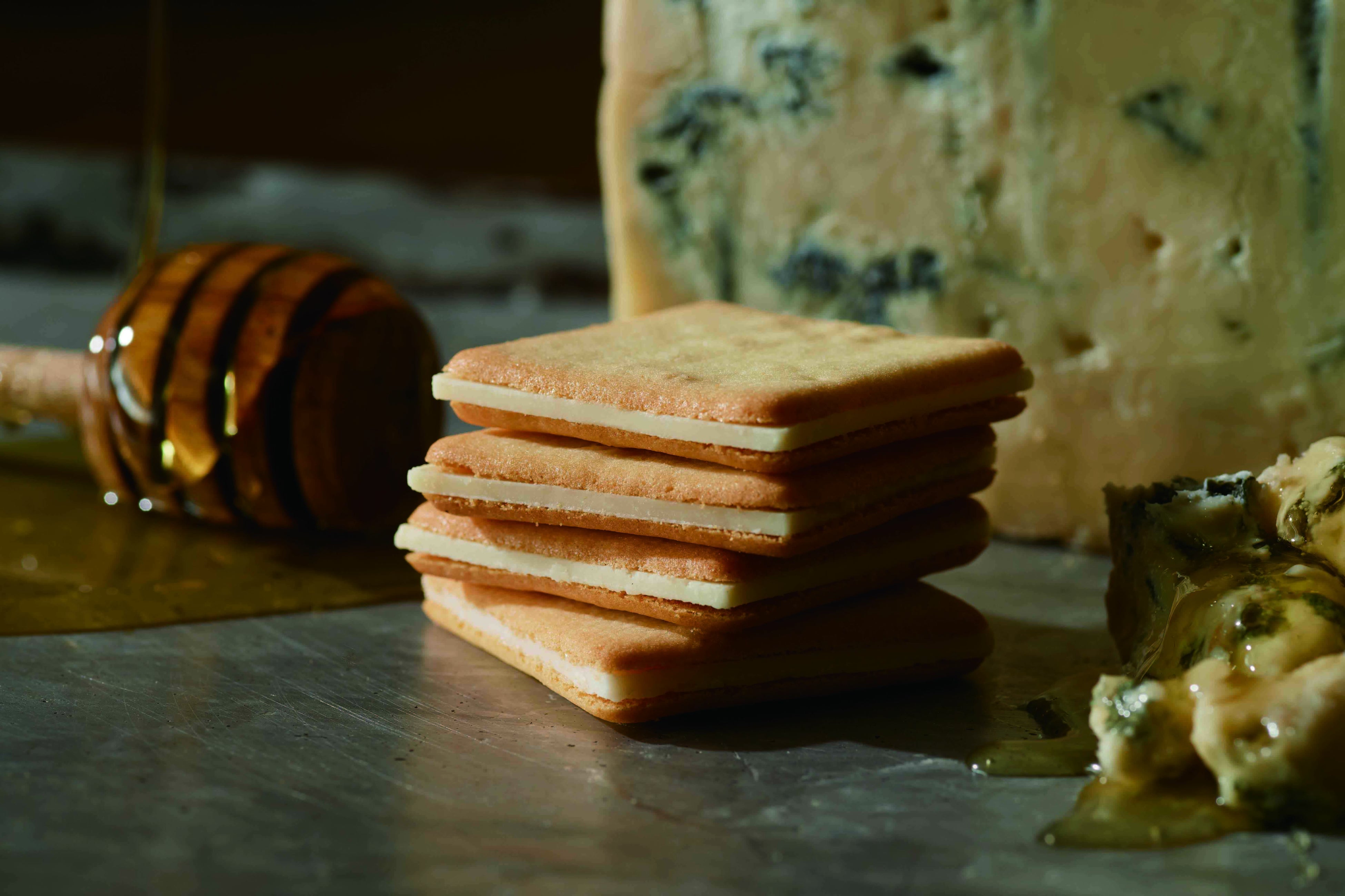 スペイン産ローズマリーの花の蜂蜜を練り込んだ生地で、濃厚なゴルゴンゾーラチーズのチョコプレートをサンドしました。