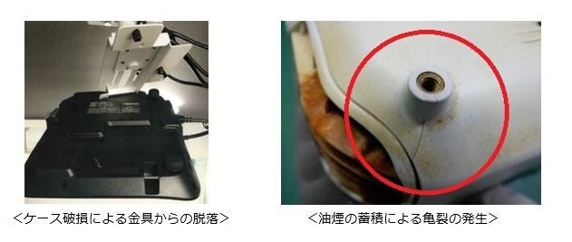 セイコーエプソン株式会社およびエプソン販売株式会社は、セイコーエプソンが製造し、エプソン販売が販売したプロジェクター(以下、エプソンプロジェクター)の一部において、空気中に漂う油や煙の多い環境※に天吊り設置されたプロジェクターの外装ケースおよび金具固定部に油が付着すると、金具固定部のプラスチックが化学反応で劣化・破損して、天吊金具や壁掛け金具からプロジェクターが落下するおそれがあることを改めてお知らせします。落下状況によっては人的被害を含む重大な事故に至る可能性を懸念しております。