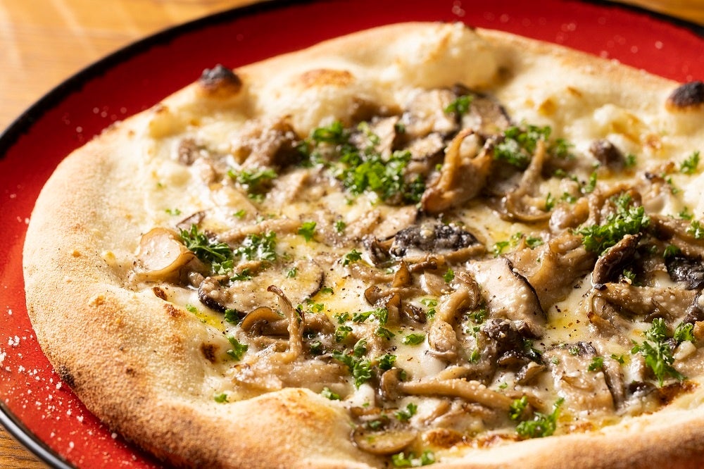 しめじ・舞茸・エリンギ・椎茸をふんだんに使ったクリームベースのピザ。きのこ苦手な方も美味しく召し上がれます。