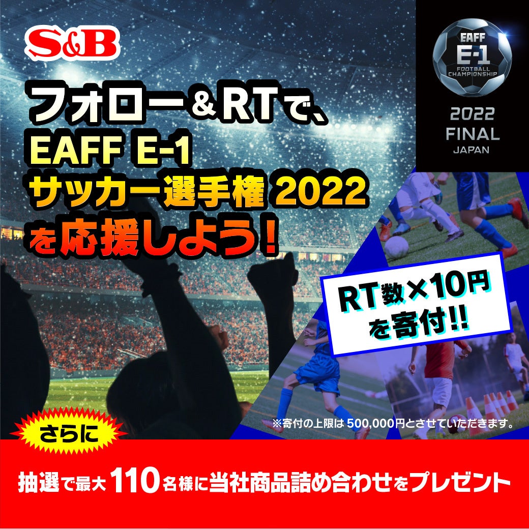 エスビー食品公式Twitterにて投稿されるキャンペーン対象ツイートにリツイートすると、1リツイートにつき10円が東アジアサッカー連盟におけるサッカー活動の支援金として寄付される、フォロー&リツイートキャンペーンを実施します。(上限50万円)