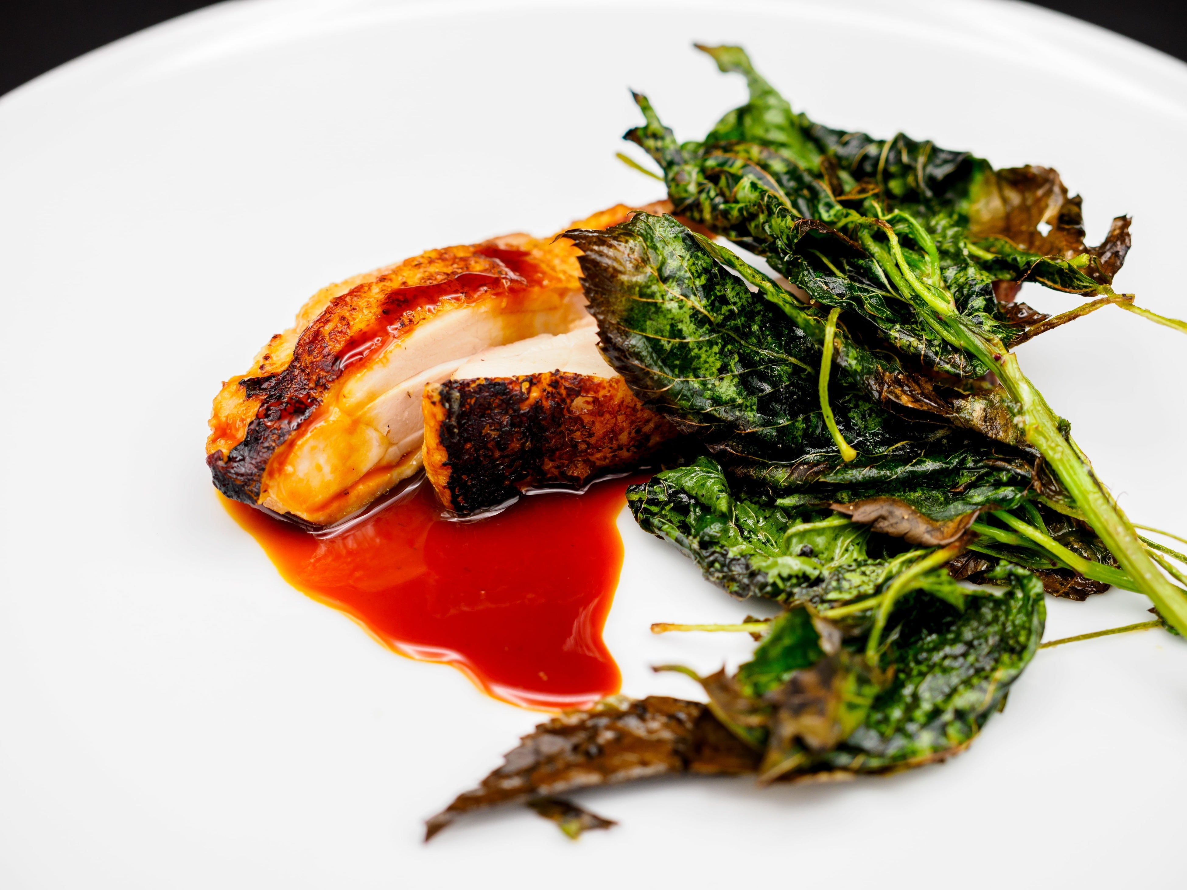 香ばしい風味とソースの酸味、甘みが絶妙に絡み合い、ホロホロ鶏の豊かな味わいをより引き立てる一品です。