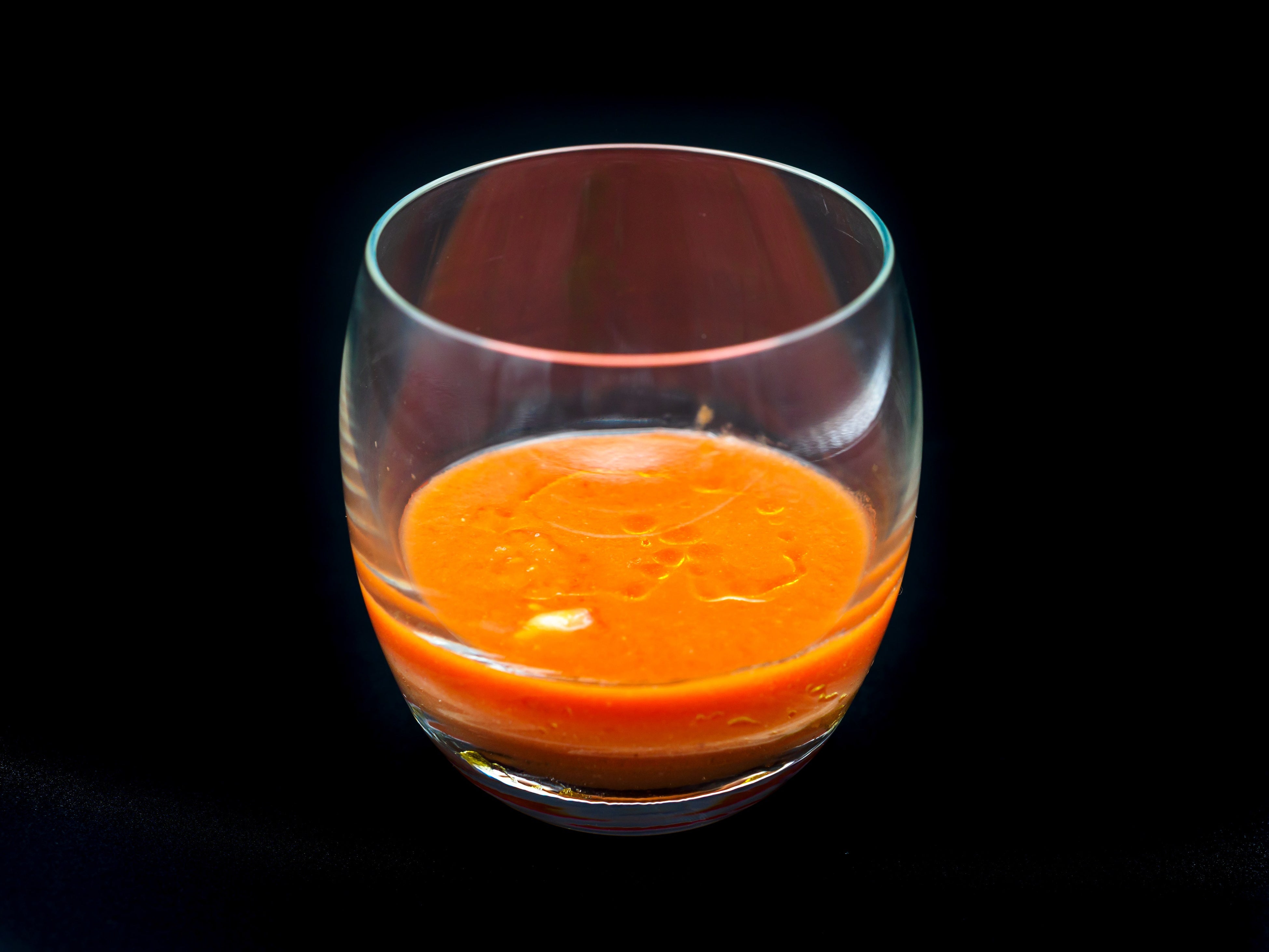 夏野菜のすいか、トマトを使って、見た目にも鮮やかな冷製スープをご用意いたしました。