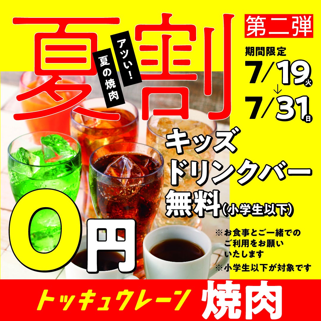 「キッズドリンクバー」が通常190円(税込209円)のところを、無料で提供いたします。