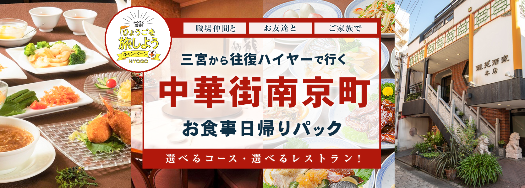 株式会社フォーティーズ(本社:大阪市鶴見区、代表取締役 岡武史)は8月31日迄延長になった「ふるさと応援!ひょうごを旅しようキャンペーン」の対象商品として雅苑酒家【南京町本店】/中華料理【龍郷】のお食事と往復ハイヤーがセットになったパックツアーの販売を開始しました。