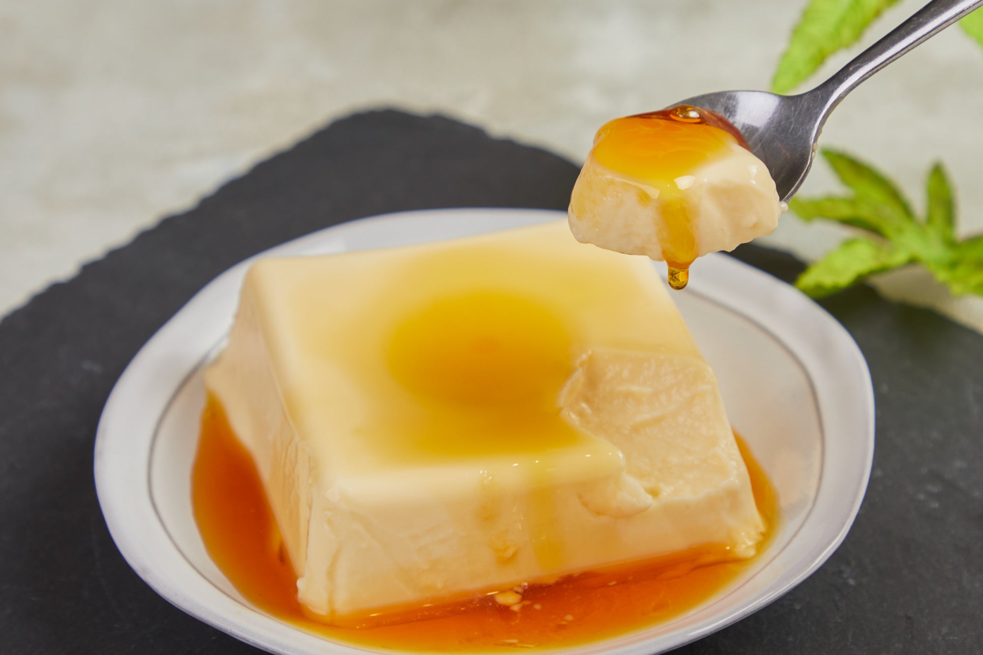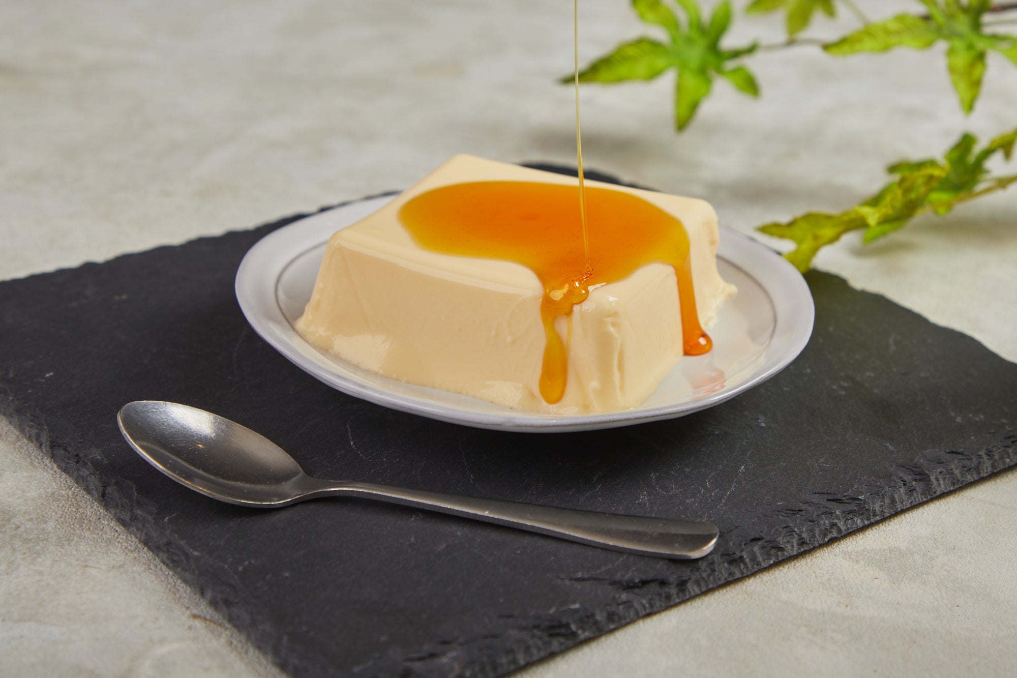 お好みでほろ苦カラメルソースをかけて味の変化を楽しんで!