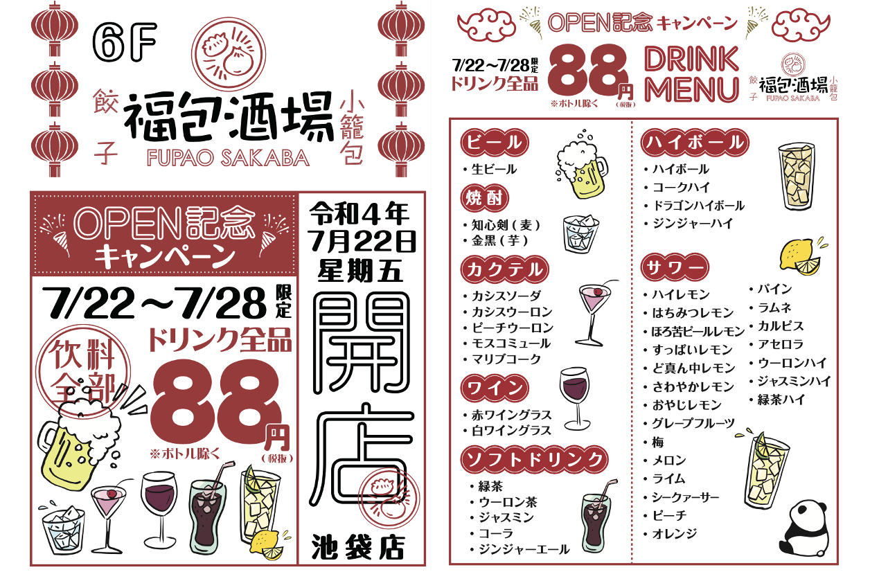 飲食店事業を展開する株式会社 Global Oceanは、「福包酒場池袋サンシャイン60通り店」を7月22日(金)にグランドオープン致します。