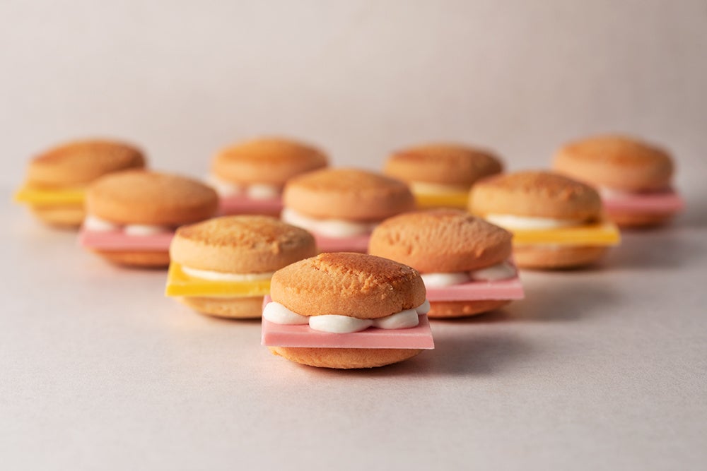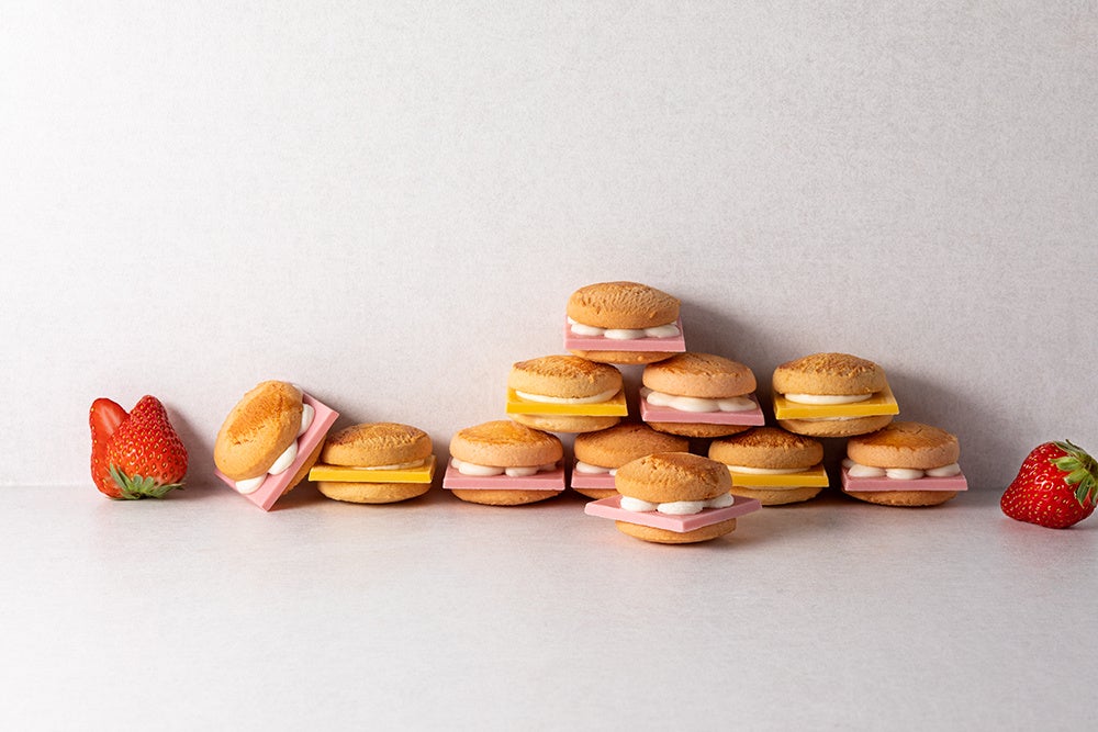 新作「ストロベリーバーガー」のテーマは、“苺のおいしさをまるかじり!”。甘酸っぱい苺を練りこんだストロベリーショコラを大胆にもドンとはみ出させました。苺が香るバンズクッキーにミルキーなホイップショコラをぷっくり搾ることで生まれるバーガーハーモニー。はみでるほどにこだわった本気のスイーツバーガーに思いっきりかじりついてみて!