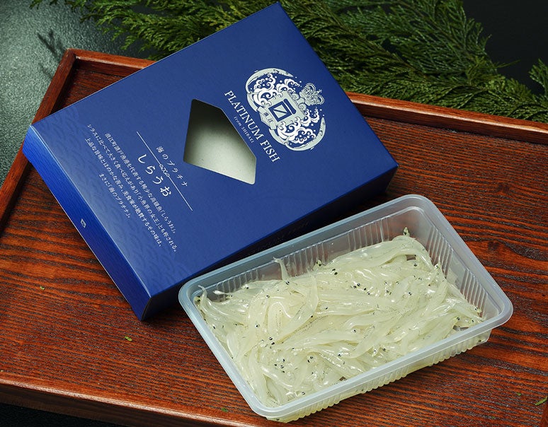 この度、その請⼾のシラウオを、数々の東北の⾷のブランディングを⼿掛けてきた⼀般社団法⼈東の⾷の会と、お取り寄せ⾷材のオンライン販売サイトを運営する株式会社⾷⽂化がプロデュースし、「海のプラチナ」という新たなブランディングの下、贈答⽤にも適した⾼級感のある新パッケージにて、販売が開始されました。
