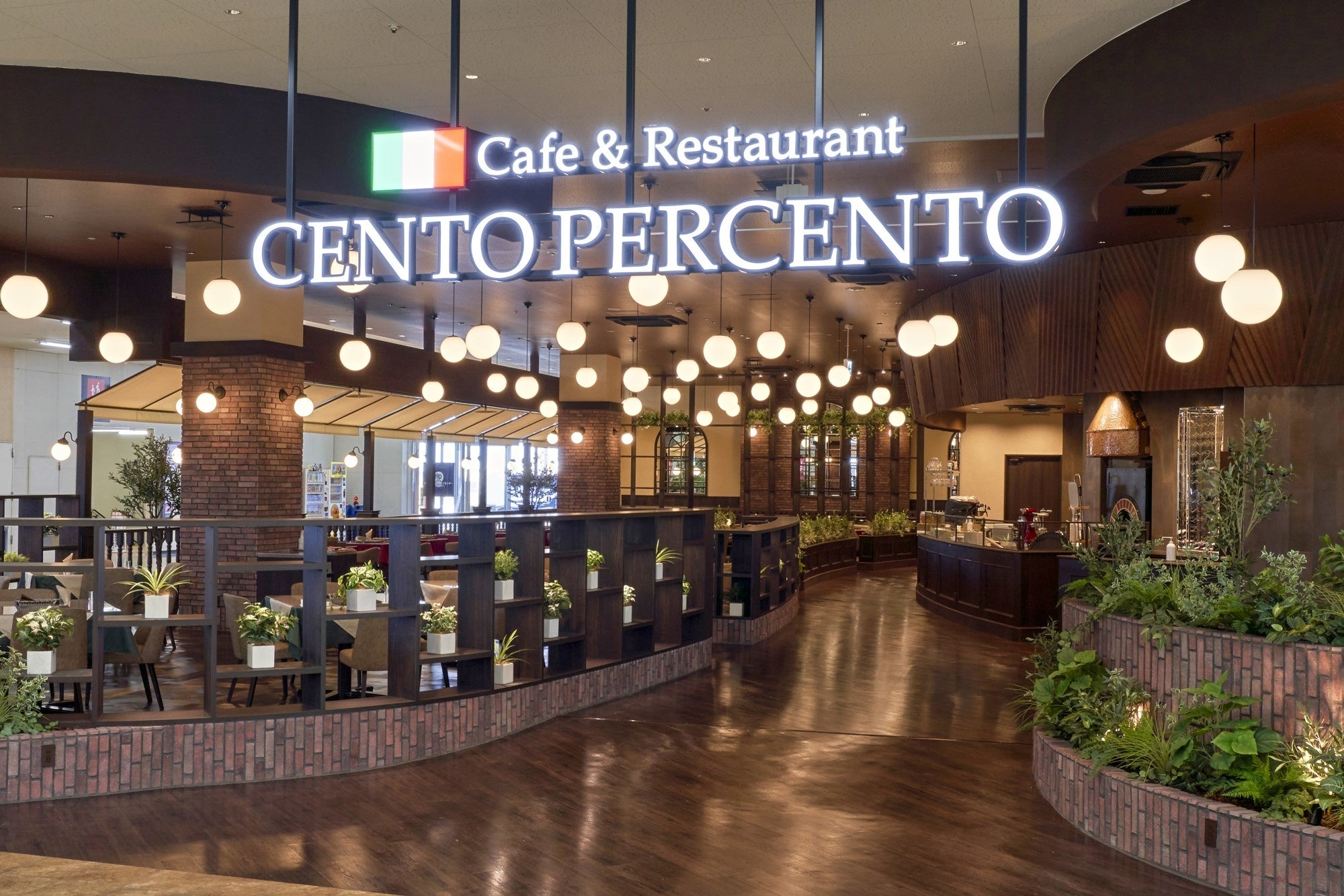 「cento percento(チェントペルチェント)」とは、イタリア語で“100%” の意味。忙しい日常から少しだけ離れて、お友達やご家族と気軽に楽しんでいただける場所を。本場のテイストを大切にしたイタリア料理を、シックでゆとりのある空間で提供する大型ホームセンター内のカジュアルレストランです。