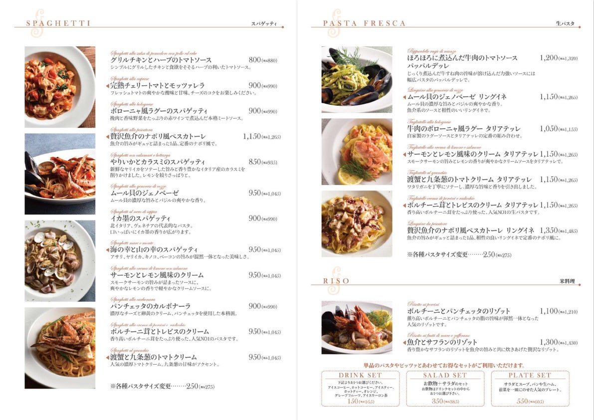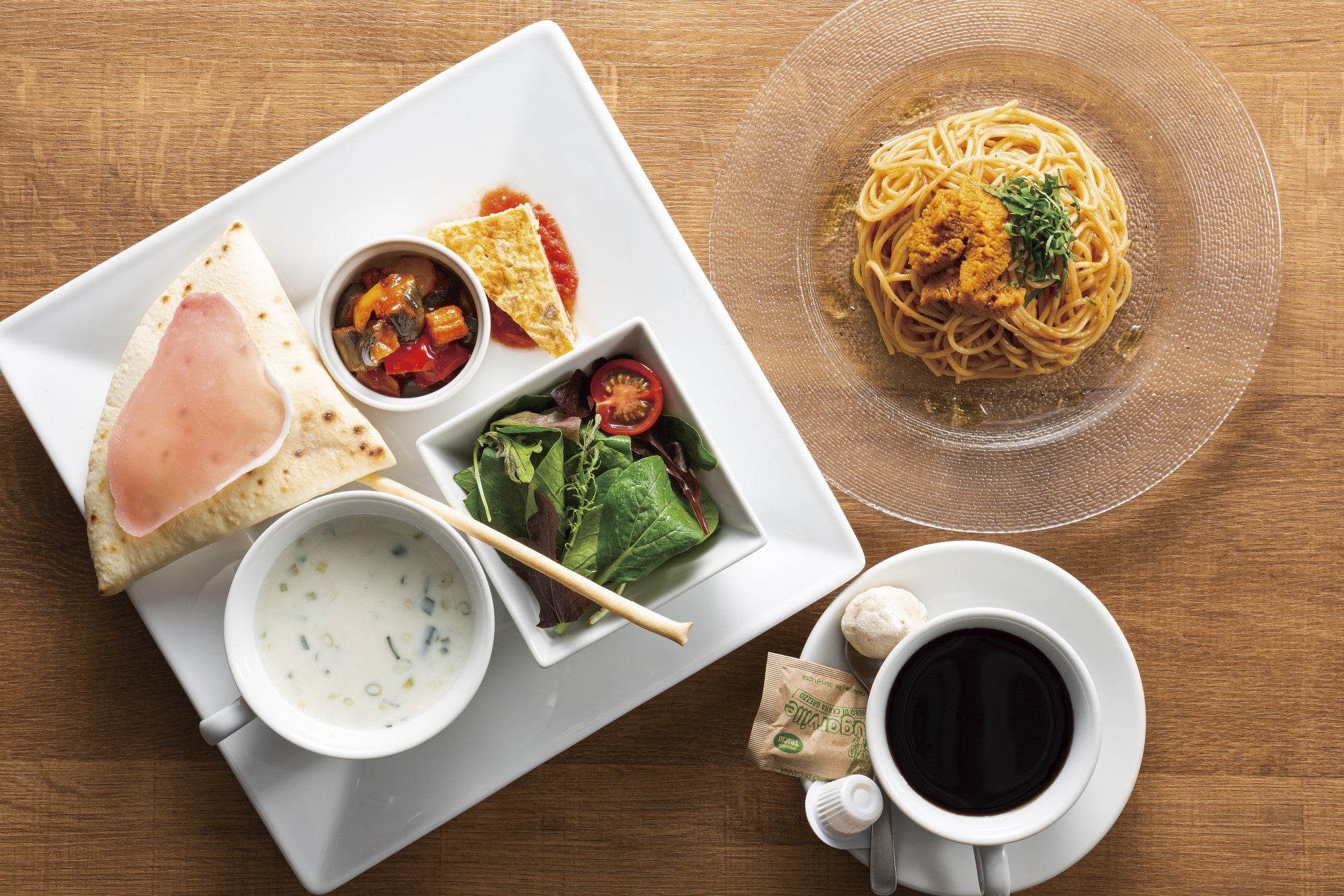 「雲丹の冷製スパゲッティ」は、前菜プレートやドリンクとご一緒に手ごろな価格で楽しめる「季節のピアットウニコ」もご用意しております。