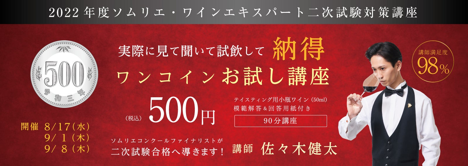 【2022年度ソムリエ・ワインエキスパート二次試験対策ワンコイン講座】を開講致します。