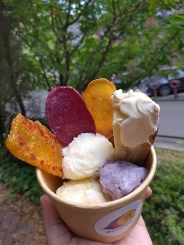 「夏のさつまいも博2022」では、参加17店それぞれが趣向を凝らしたさまざまな夏いもスイーツのメニューが並びます。定番の冷やし焼き芋から、オリジナリティあふれるメニューまで、その数約120種!同じ冷やし焼き芋でも、お店によって産地や焼き方が異なるため、味わいも変わってきます。より多くのメニューを味わって、夏いもを満喫してみてください!