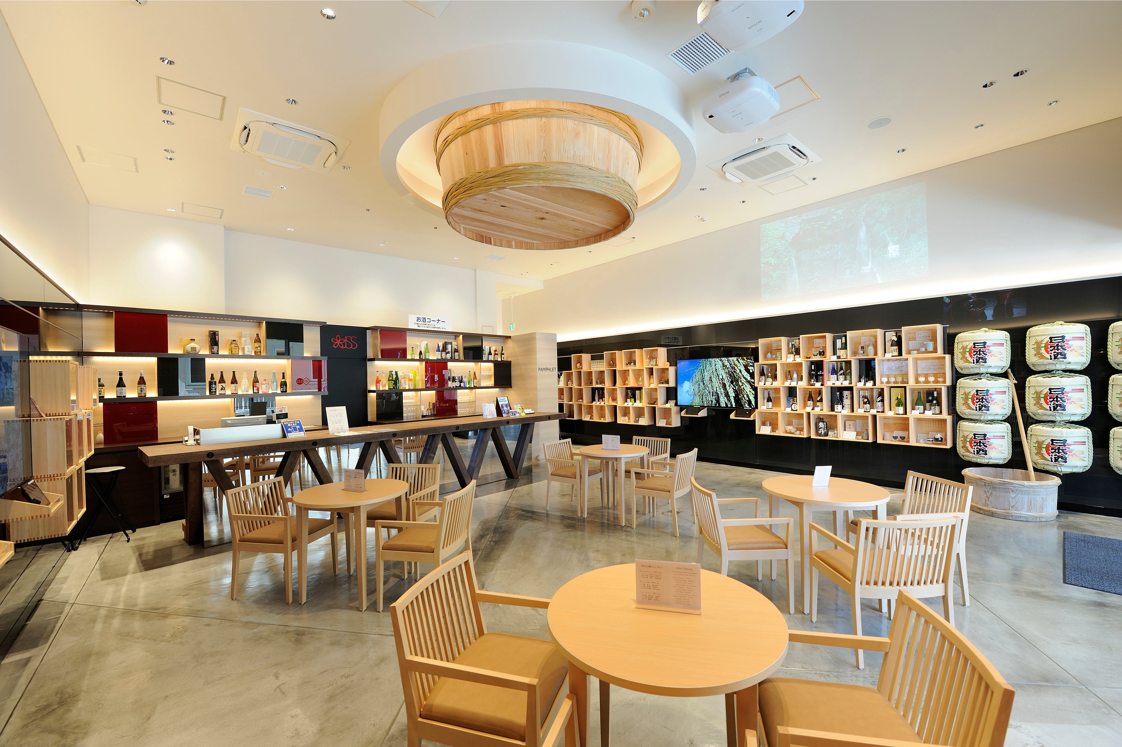 日本の酒情報館は、歴史と文化を含む日本酒・本格焼酎・泡盛の魅力のすべてを「見て・触れて・体験する」ことを通じて世界中の人に知っていただくための施設です。大吟醸酒・純米吟醸酒・純米酒・古酒・スパークリング清酒・貴醸酒など、全国各地の様々なタイプの日本酒、芋・麦・米・黒糖などの本格焼酎や泡盛、そして酒蔵の造る様々な果実のリキュールを常時50アイテム程度、1杯100円からお試しいただけます。選ぶのが難しい方のために、バラエティー豊かで少しお得な3種セットもご用意しています。銘柄は入れ替わりますので、いつでも違うお酒を味わっていただくことができます。