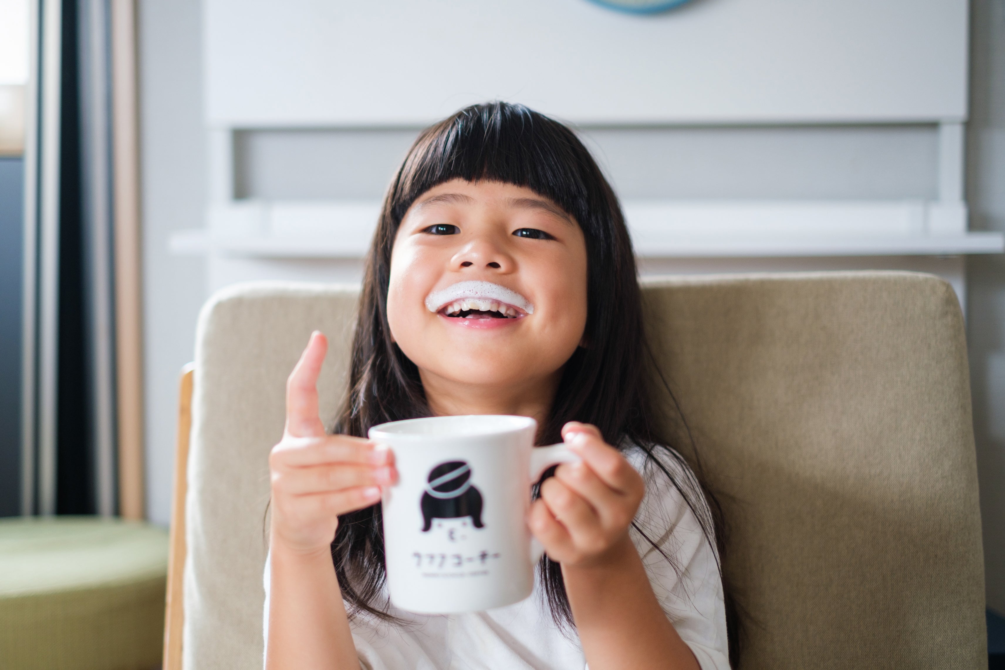 子どもが飲む時は、ミルクをたっぷり入れてマイルドな味わいにするのがオススメです。