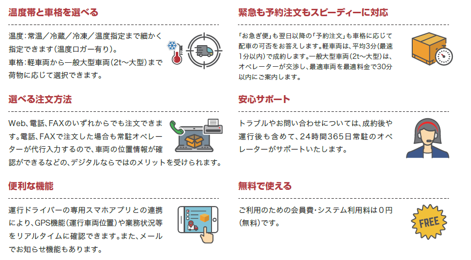 ■全温度帯・全車格に対応(温度管理の配送に特化、幅広い車格で商品の配送をカバー)