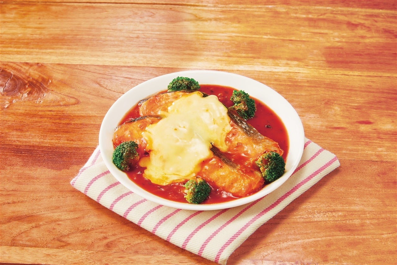 新商品の「サーモンのトマトチーズ煮トマトパッツァ用ソース」は、普段手に取る機会の多いサーモンとブロッコリー、チーズをフライパンに並べて煮こむだけで、お子様が喜ぶメインの主菜が1品できる調味料です。魚介とトマトの旨みたっぷりのソースに仕上げました。お子様にも嬉しいとろーりチーズで、魚メニューをおいしく楽しくお召し上りいただけます。
