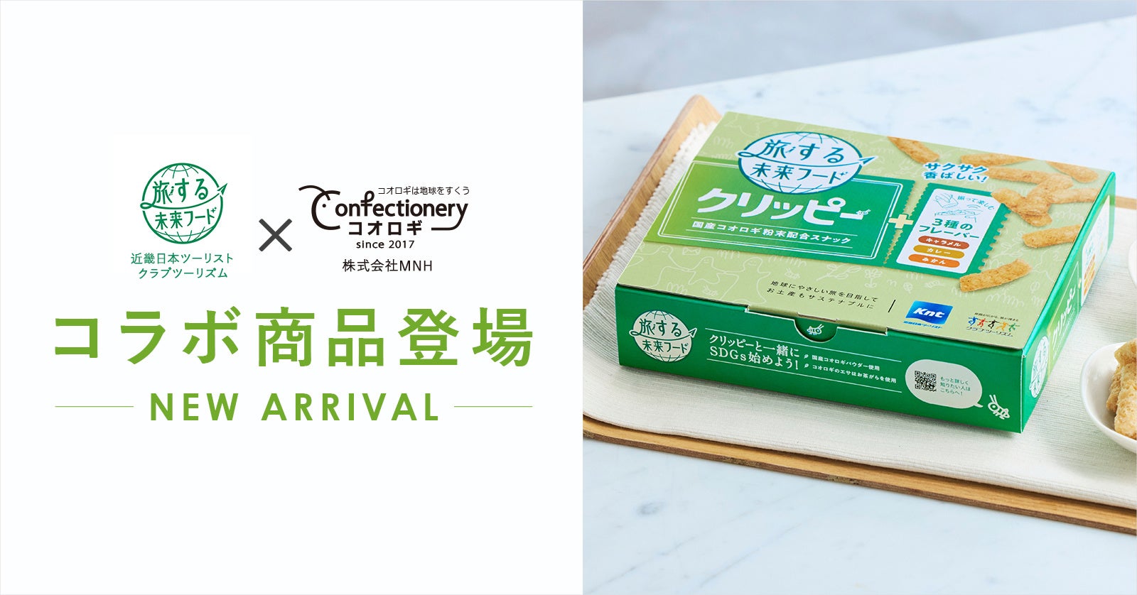 また、KNT-CTホールディングス株式会社(本社:東京都新宿区 代表取締役社長:米田 昭正)とコラボレーションし、企画開発した、国産コオロギ粉末配合のスナック『旅する未来フード クリッピー』の販売も行います。こちらは、7月に発売した新商品です。