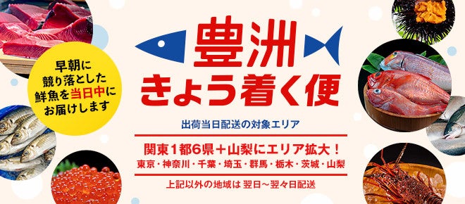 東京・神奈川・千葉・埼玉・群馬・栃木・茨城・山梨を対象エリアとして、「豊洲」市場に「きょう」入荷した新鮮な食材がその日のうちに「着く」「便」利なサービスです。都内23区は17時までに配達、それ以外の対象エリアは当日18時以降に配達します。世界中から豊洲市場へ集まる新鮮な魚介類や野菜・フルーツをプロだけでなく、料理好きな一般の消費者にも直接お届けできるのが、豊洲市場ドットコムの「豊洲きょう着く便」です。詳しくはwebへ https://www.tsukijiichiba.com/user/collection/7