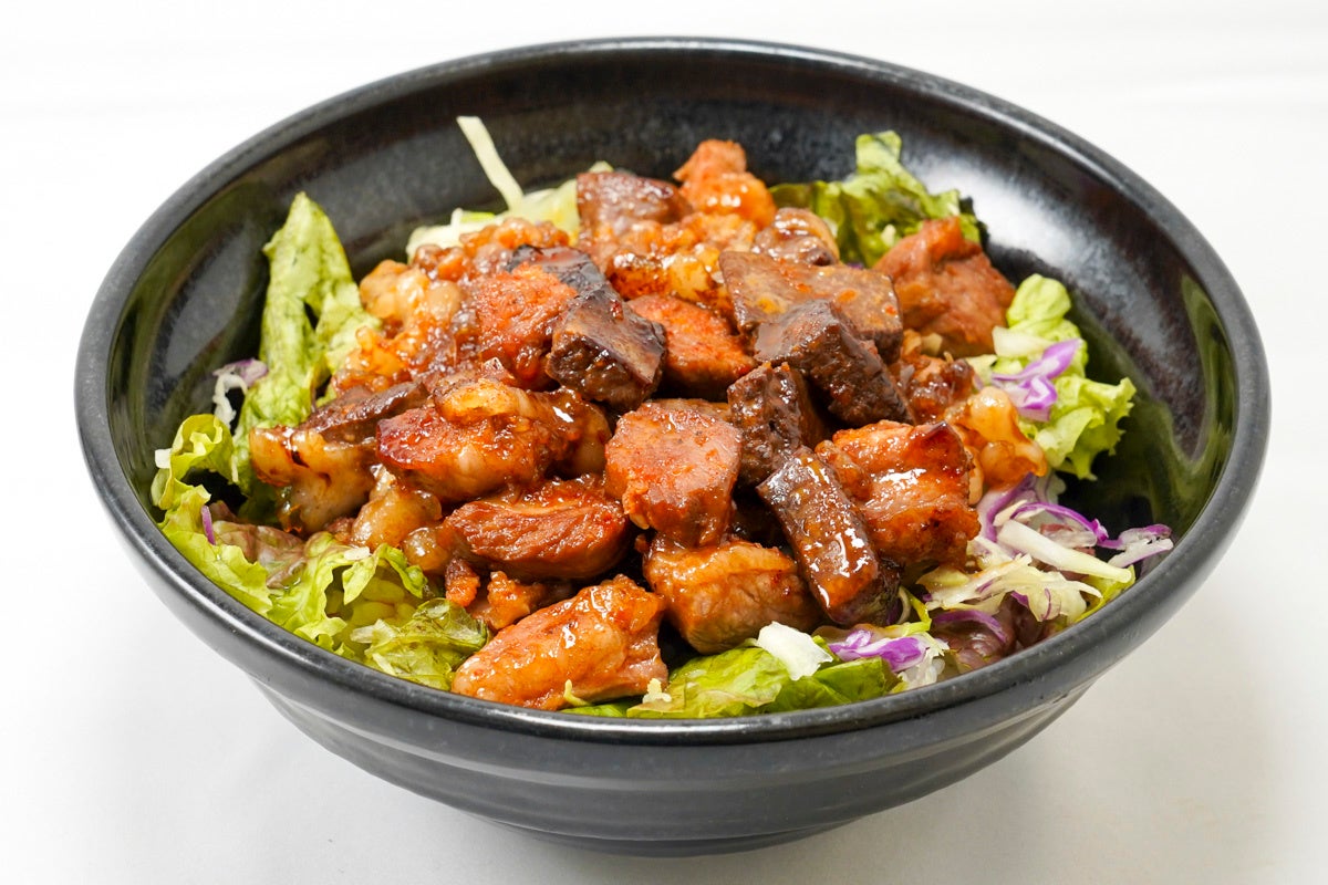 夏バテなんのその、ゴロゴロした肉類がたっぷり、ガッツリ食べたい人向けに『ハラミとチレの網脂焼き丼』、ピリ辛がクセになる『旨辛ハラミとチレの網脂焼き丼』、その他鬼おろしが付いた丼ものがラインナップ。